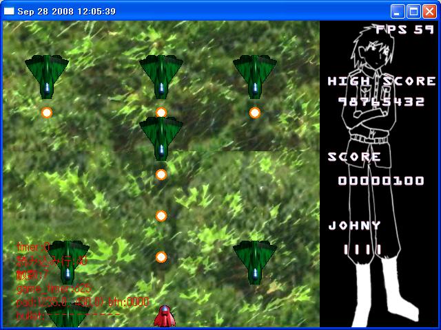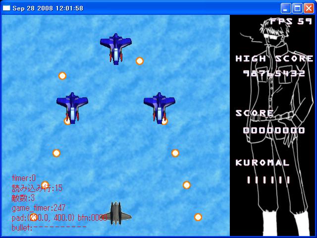 とりあえず自機と敵とスコアだけ載せてみました。